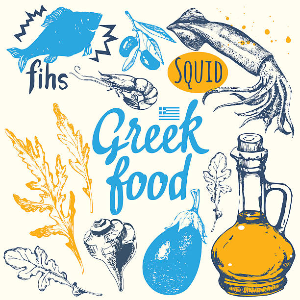 Greek Food Set stock vector. Illustration of fish, greek ...